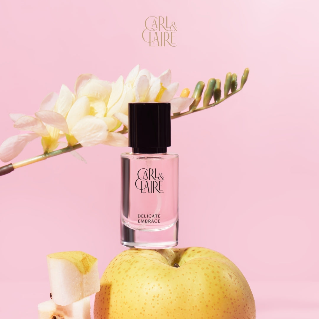 Sensual like the inside of a flower, Delicate Embrace opens with the alluring scents of Freesia, Citrus, and Pear. Like the familiar embrace that gently arouses you from sleep, notes of Lily of the Valley, Rose, and Musk illustrate warmth and intimacy.